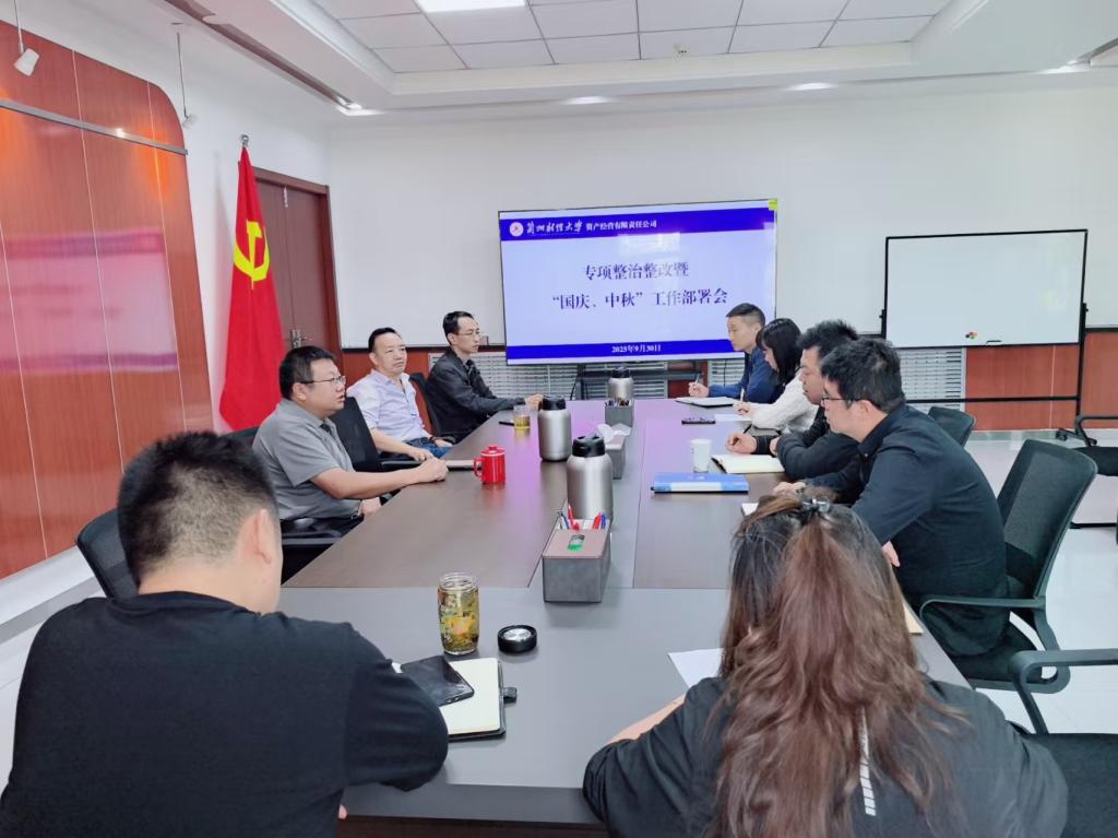 任建宏指出,一是公司各部门要认真梳理高校领域重点问题专项整治已完成的工作,并把握时间节点,持续推进重点问题整改;二是要进一步提高政治站位,坚持底线思维,扎实做好服务保障和校内商铺巡查,深入推进安全风险隐患排查,积极营造安全、舒适、整洁的校园环境;三是全体职工要进一步强化工作纪律,认真做好值班值守工作,确保假期工作不断线,筑牢安全防线;四是全体职工,特别是党员干部要在“双节”期间严于律己,坚决杜绝松懈思想,严守纪律红线。