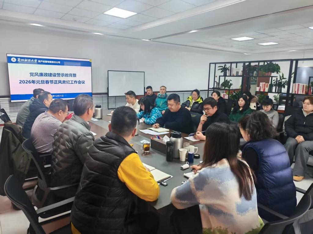 为深入推进党风廉政建设,筑牢广大职工拒腐防变思想防线,营造风清气正的工作氛围,2025年12月31日上午,公司党支部在和平校区兴隆讲堂二楼会议室召开党风廉政建设警示教育暨元旦春节正风肃纪安排工作会议。公司党支部书记、总经理张新舟主持会议。公司全体员工参加会议。