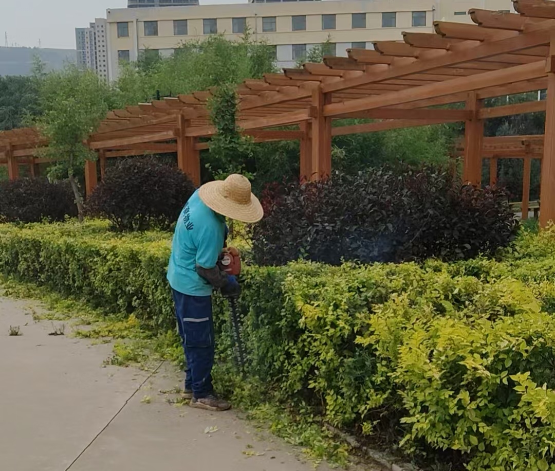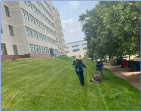 绿化环卫人员细致修剪草坪、清理枯枝落叶、持续清扫校园道路,为广大师生营造了优美、整洁的校园环境。
