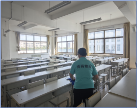 楼宇服务保障人员对各校区教学楼、图书馆、办公楼等公共区域进行深度清洁、规整教室桌椅、备齐教学用具,为新学期“第一堂课”提供了坚实保障。