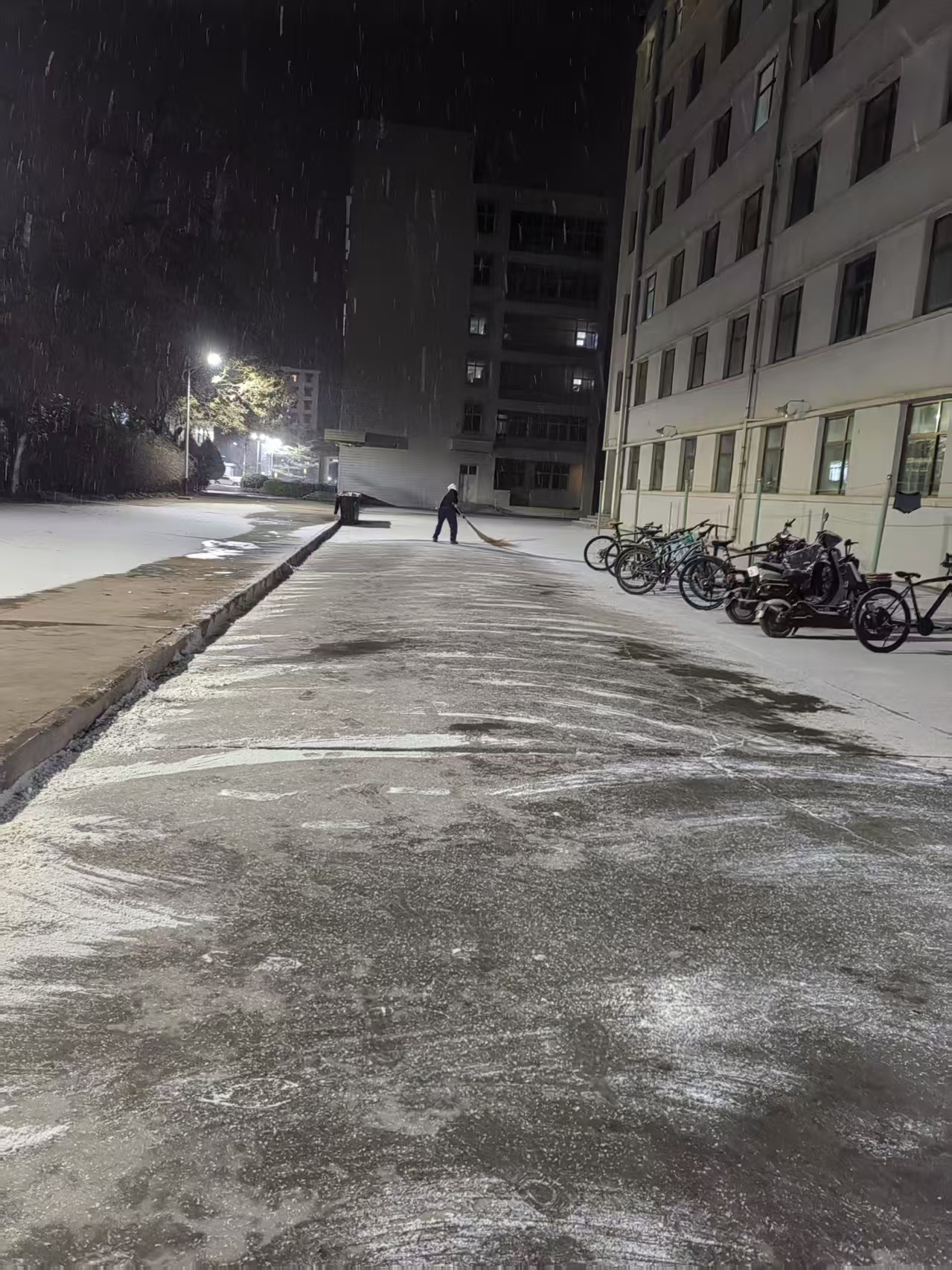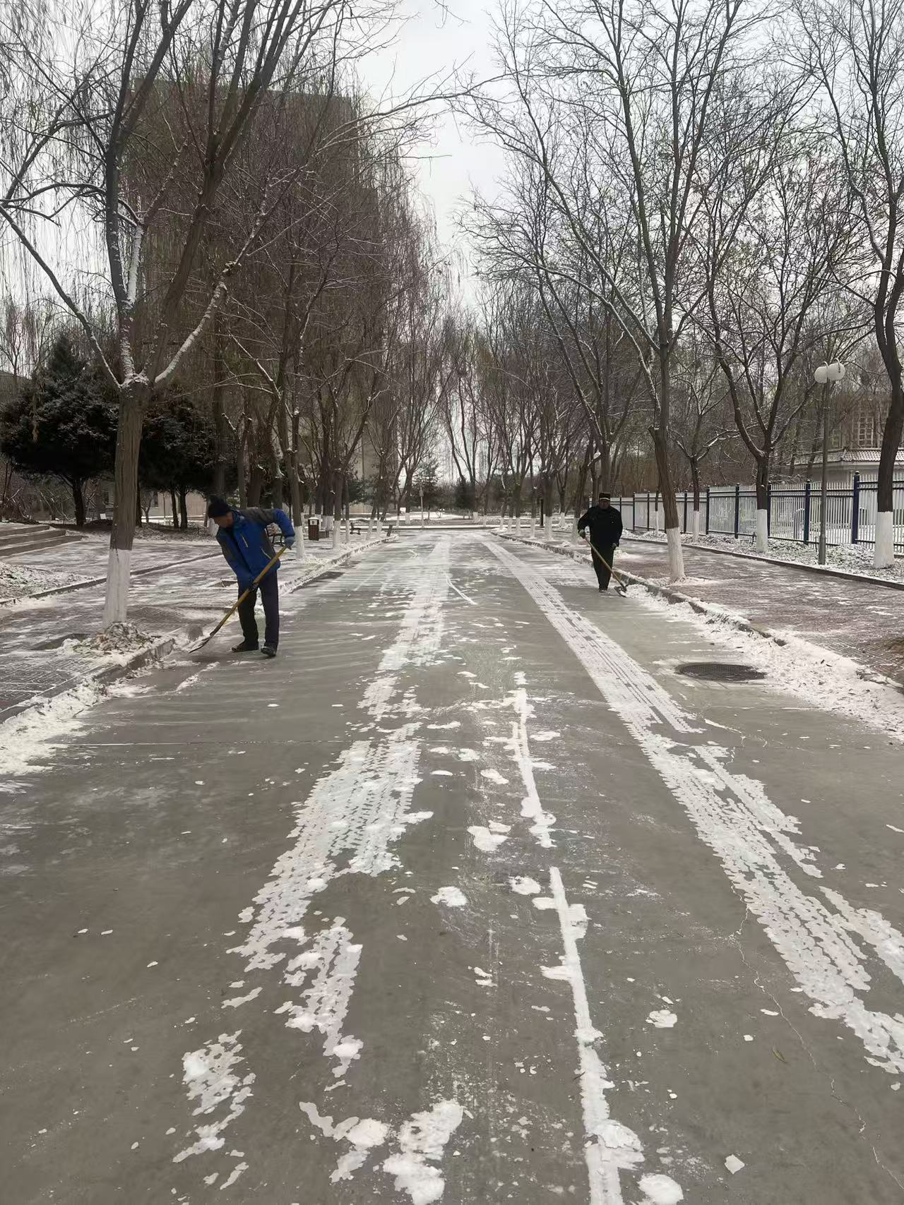 12月12日,兰州市普降中小雪,银装素裹的景色为师生带来欣喜的同时,也给大家的出行带来不便。为确保校园道路畅通与师生安全,博商物业公司以雪为令,迅速启动冬季除雪应急机制,组织全体物业服务人员开展扫雪除冰作业,以实际行动护航校园安全。
